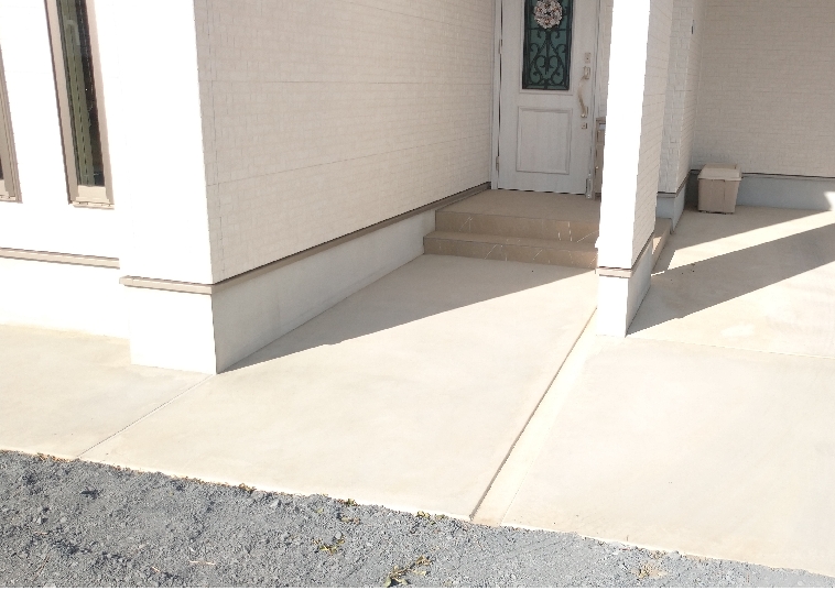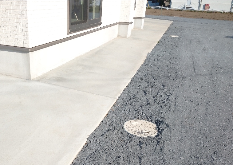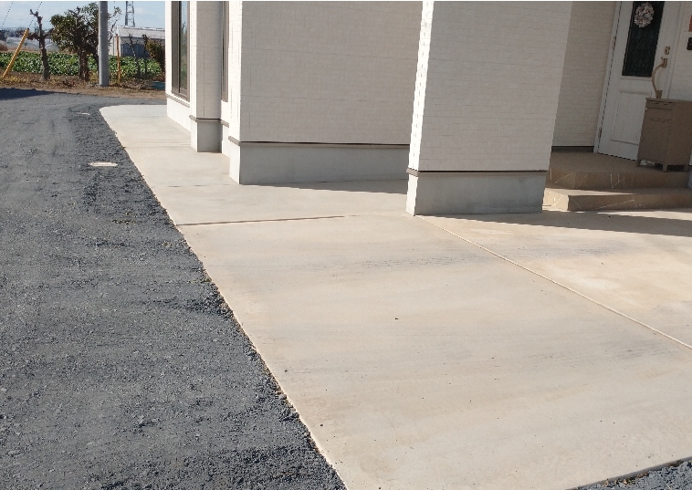 増設の駐車場と犬走りが完成、犬走りがあると住宅がちょっと豪華に見えますね![]()