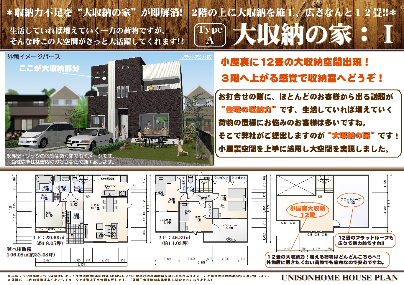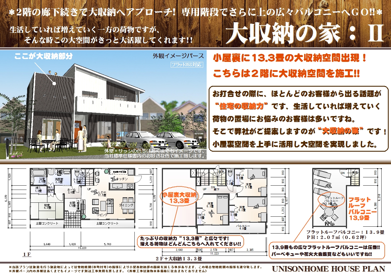 “大収納の家”プランはおかげさまをおもちまして、企画開始以来たくさんのお客様に興味を持って頂いております当社人気のプランとなっております!!