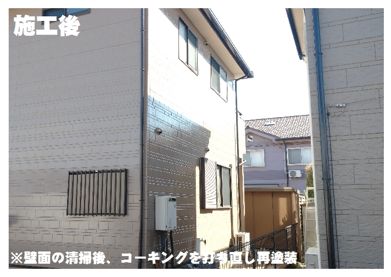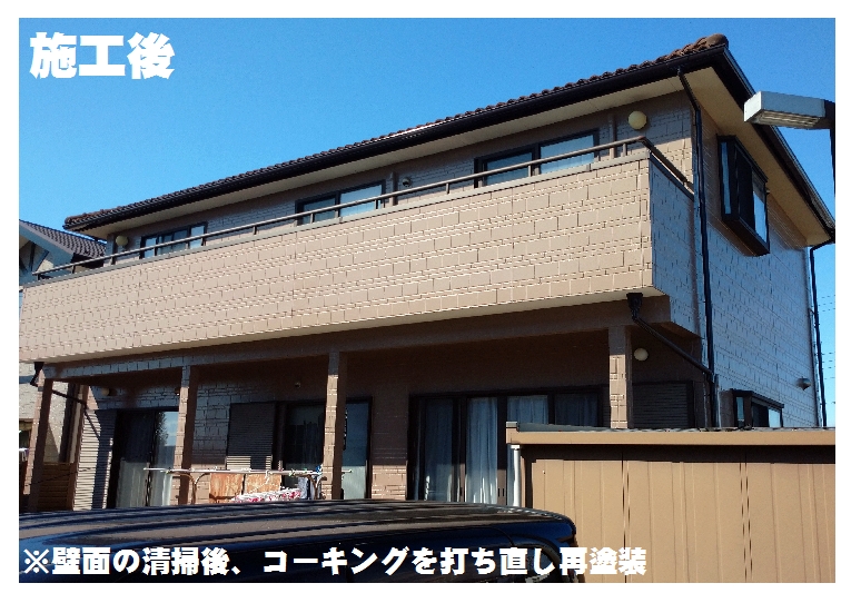 施工後は外壁やトイ・サッシの金物まで塗装したので、色も鮮やかですね![]()